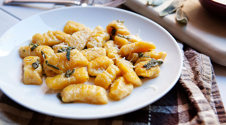 To reheat, in a saute pan over high heat add 1 tablespoon of soft butter. Cook until the butter begins to foam and turn brown. Add 2 teaspoons sage leaves and 1 cup of dumplings. Cook for an additional minute until the dumplings are heated through. Repeat until you have desired amount of servings. Plate and top with freshly grated Parmesan.