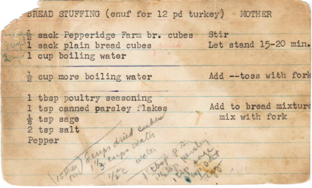 Grandma's original recipe was stapled to Mom's newer version. Fun to see the pencil notes on the original version with Mom's alterations.