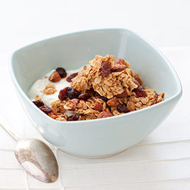 Chopping the almonds by hand is the first choice for superior texture and crunch. If you prefer not to hand chop, substitute an equal quantity of slivered or sliced almonds. (A food processor does a lousy job of chopping whole nuts evenly.) Use a single type of your favorite dried fruit or a combination. Do not use quick oats.