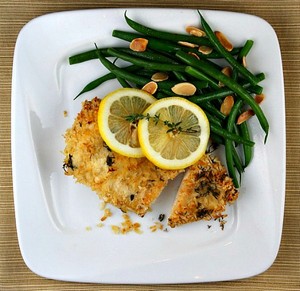 (Adapted from Cook's Illustrated Crisp Breaded Chicken and Crispy Roast Lemon Chicken recipes)