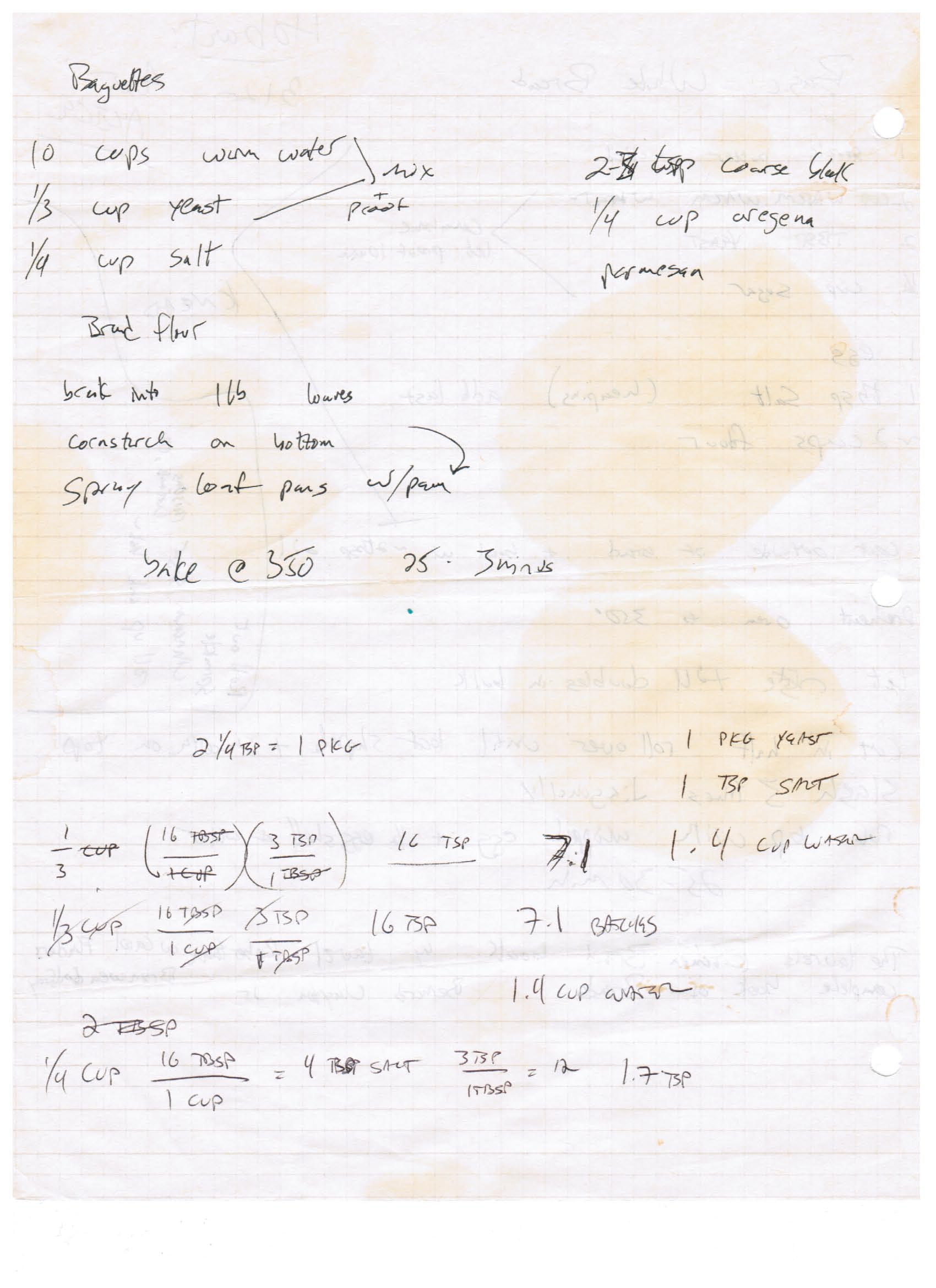 This is another bread recipe from Aunt Alice. We only made regular baguettes together, but she gave me some hints on how to make her parmesan baguettes.
