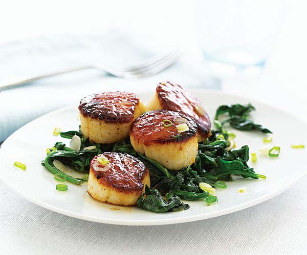 - Serve the scallops with the spinach, sprinkled with the remaining scallions.