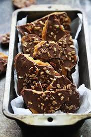 - Remove from heat and pour into the prepared pan, spreading as evenly as possible with an offset spatula. Be careful, this stuff is hot! Sprinkle the chocolate chips all over the toffee, and wait a couple of minutes until they melt. Then spread the chocolate evenly over the toffee. Sprinkle with chopped nuts, and press them in gently with a spatula or bottom of a glass to anchor them in the chocolate.
