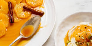 - Pour caramel sauce over orange slices. Cool and chill in refrigerator