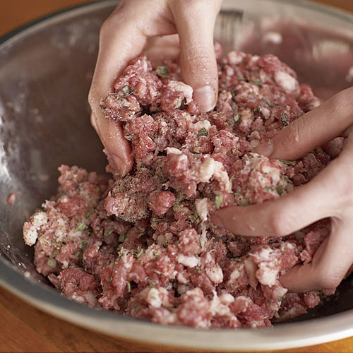 1. In a small bowl, mix the salt, pepper, garlic, and sage. Add the seasonings and the wine to the ground meat and mix briefly but thoroughly with your hands. Don’t overmix, or the fat could begin to melt.