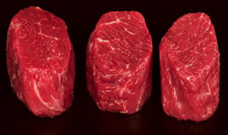 A shoulder tender also called beef shoulder, petite tender, beef shoulder tender petite roast, bistro filet, rat or teres major steak is a US cut of beef of the teres major muscle from the blade of the shoulder (chuck). It is one of the most tender beef muscles and is said to be “white-tablecloth quality”, being a similar quality to filet mignon, but less expensive. It is seldom used, as it requires skill to extract. It is known as petite tender medallion, petite tender or tender medallions if sliced into medallions (after being roasted or grilled whole). It is shaped like a pork tenderloin, and weighs 8 to 10 ounces (230 to 280 g)