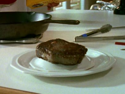 - Remove steak from pan, cover loosely with foil, and rest for 2 minutes. Serve whole or slice thin and fan onto plate.
