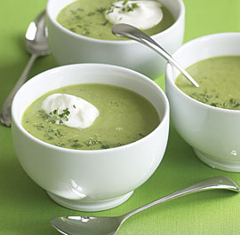 - Ladle the soup into serving bowls and top with a generous spoonful of the lemon cream. Scatter the remaining chopped mint over the soup and serve. If you choose to serve the soup cold, chill it in the fridge but take it out 15 minutes before you serve. Adjust the seasoning if necessary before serving.
