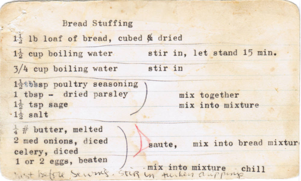 Grandma's original recipe was stapled to Mom's newer version. Fun to see the pencil notes on the original version with Mom's alterations.