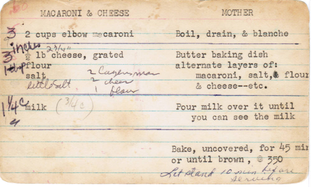 This is what I grew up with. I never had Kraft Mac & Cheese until high school. I went over to a house where Jenny Martin was babysitting and I had some for the first time. Not anywhere near as good as homemade!