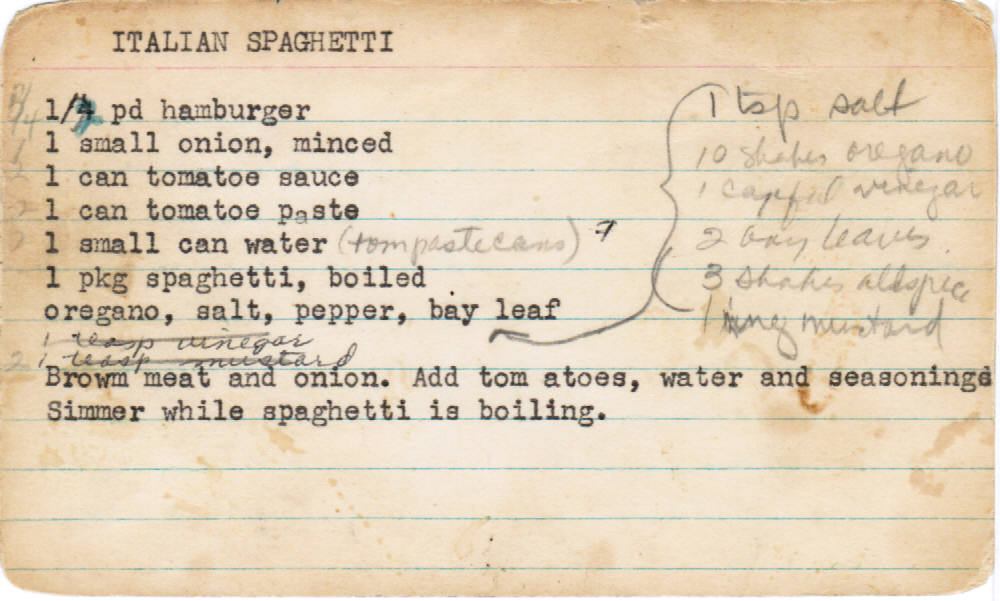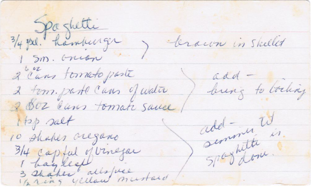 Mom decided that she could duplicate or better the spaghetti sauce, which resulted in this.