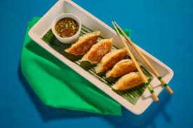 - PLATING: Serve pot stickers on a large platter lined with lettuce with a bowl of dipping sauce on the side.