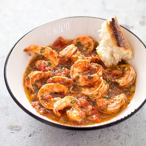 In this version, we boost the flavor of the sauce by first browning the shrimp shells and using them to make stock. This stock forms the basis of our sauce, in which we poach our shrimp, leaving them plump and succulent. In honor of the dish’s “devilish” reputation, we add a bit more heat in the form of minced pepperoncini peppers. Generous amounts of chopped parsley and basil contribute freshness, and a drizzle of extra-virgin olive oil provides a fruity, peppery finish.