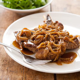 Why this recipe works: Bone-in chops were a must for our Smothered Pork Chops, because the bone kept the meat moist and added flavor to the sauce. After a number of tests, we settled on blade chops. Caramelizing the onions made the sauce too sweet and took almost an hour. We had better luck cooking them in butter until they were lightly browned. We swapped out chicken broth in favor of meatier beef broth, which greatly improved the flavor of our sauce. Adding dried thyme, bay leaf, and cider vinegar bumped up the flavor even more.