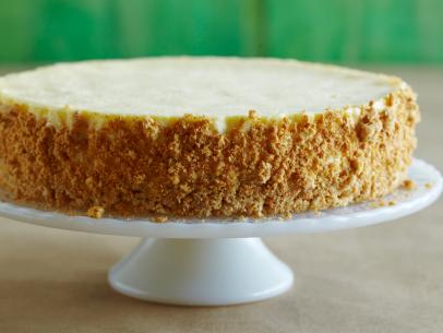 - When ready to serve, place the entire cake pan into a hot water bath for about 15 seconds. Unmold onto a cake round or serving dish. Take the remaining graham cracker mixture and press into the sides of the cake.