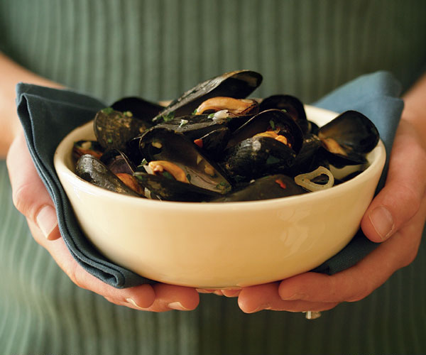 Fine Cooking 76: This dish is part of a laid-back dinner party, with particular emphasis in the laid-back part. (There’s even a suggestion built into the timeline that reads, “Open a bottle of white wine to use in the mussels and the pasta. Pour yourself a small glass.” The sweet and briny mussels are a big part of what makes the dinner both company-worthy and stress free. Learn more about how to choose and cook mussels, including how to discard the “beard” if you find one.