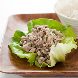 Why This Recipe Works: To get uniform, moist pieces of meat in our Thai pork lettuce wrap recipe, we chopped pork in the food processor and then marinated it in a little fish sauce so it would retain moisture during cooking. To refine our Thai pork recipe’s taste, we added sugar to balance the tart (lime juice), salty (fish sauce), and hot (dried chiles) flavors characteristic of Thai cuisine.