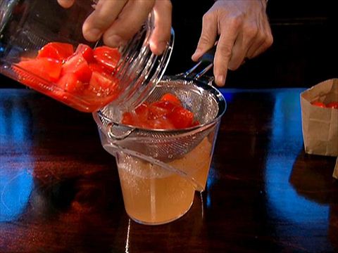 - Cut each of the tomatoes into 8 pieces and put them into a large glass jar. Add the vodka, stir to combine, and cover. Put in a cool, dark place for at least 5 days and up to 7 days, stirring every day. After 7 days, strain through a fine mesh strainer and discard the solids.